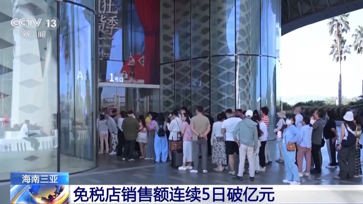 记者从三亚市商务局了解到,12月18日至22日全市免税店销售额累计5.35亿元,同比增长50.3%,连续5天单日销售额均突破亿元大关。