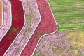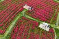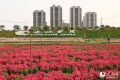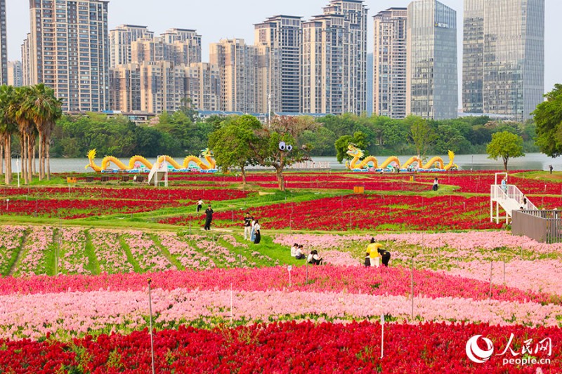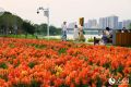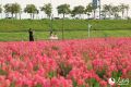 连片的橙色、粉色花田沿江铺开。人民网记者 焦艳 摄