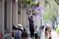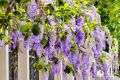 蓝花藤“花瀑”从校园围墙上倾泻而下。人民网记者 陈博 摄