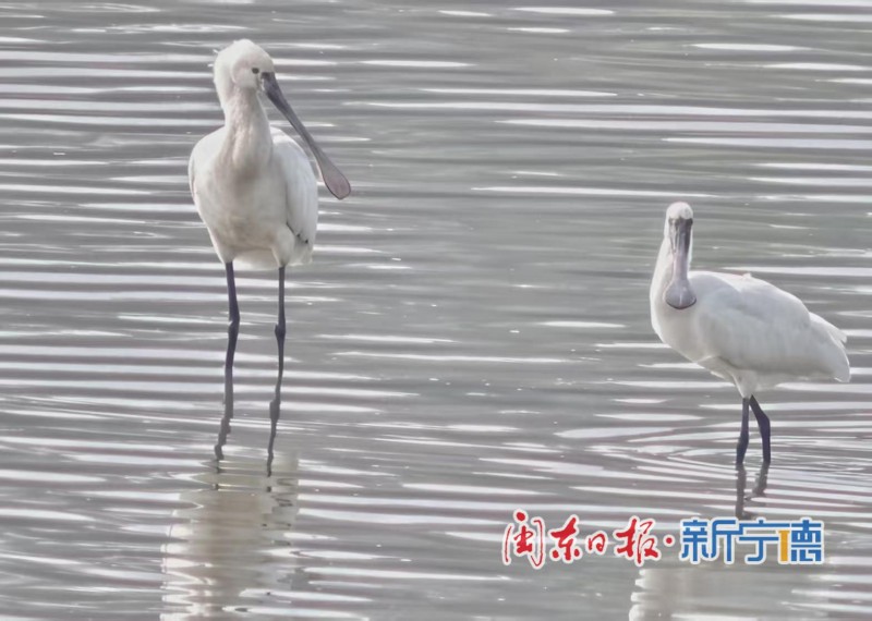 近日,宁德东湖湿地迎来一批“稀客”——多只黑脸琵鹭在此栖息、觅食。黑脸琵鹭是国家一级重点保护野生动物,因数量稀少、姿态优雅,被誉为“鸟中大熊猫”,也被列入《世界自然保护联盟濒危物种红色名录》。