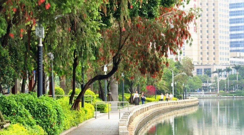 近日,不少市民发现漫步筼筜湖畔、南湖公园,总能被一抹亮眼红色吸引——枝头挂着细长“红穗”,远看如火团,近观似红色小刷子。