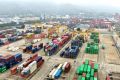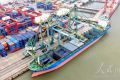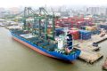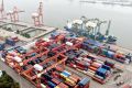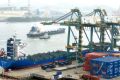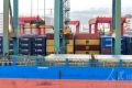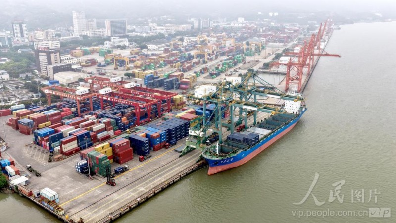 4月14日,福建省福州青州集装箱码头,集装箱吞吐作业繁忙有序。