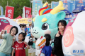 市民游客在嘉年华活动中与“闽超”吉祥物“福小龙”合影。新华网 蒋巧玲 摄