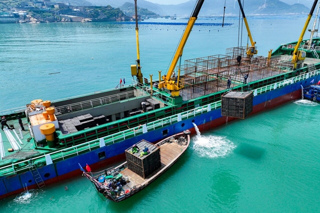 连日来,随着海水温度持续攀升,中国鲍鱼之乡——连江也迎来了一年一度的鲍鱼“北上避暑”季,近19亿粒(约500万笼)鲍鱼将分批搭乘活水运输船,从连江海域启程,跨越千里奔赴山东荣成等北方海域。
